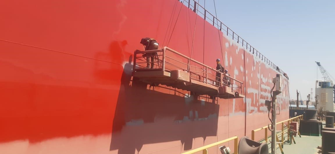 تم تنفيذ أنشطة الإصلاح والصيانة للوحدات البحرية من خلال أعمال السفع الرملي. هذه العملية أزالت بفعالية الصدأ والطلاءات القديمة والملوثات من أسطح السفن، مما ضمن التنظيف المناسب وتوفير أساس متين للطلاءات الواقية وفقًا للمعايير البحرية الدولية.