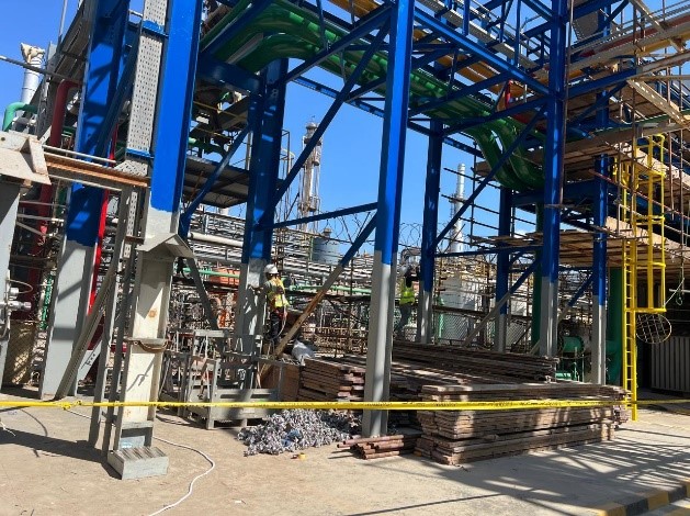 Executed thorough surface preparation through both manual and mechanical chipping techniques. This process ensured the complete removal of rust, scales, and surface contaminants, providing a clean and reliable substrate ready for the application of high-performance protective coatings in line with international standards.