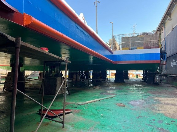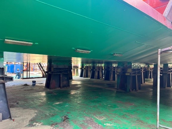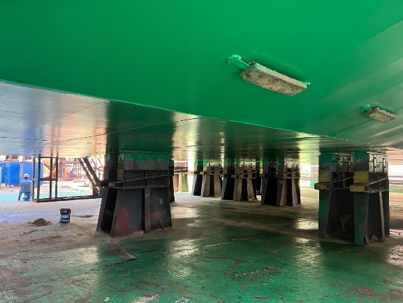 Applied advanced epoxy and non-epoxy coating systems designed for marine applications. Using airless spray technology, the coatings provided superior resistance to corrosion, abrasion, and environmental stress, securing reliable long-term protection for ship structures.